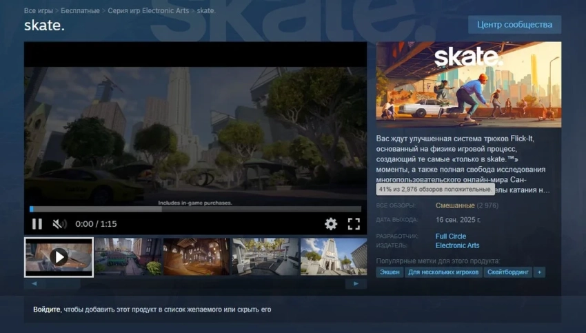 Самое интересное о кино на YouTube канале Игромании!Обложка: скриншот skate.Запуск skate. (2025) в раннем доступе, мягко говоря, прошёл совсем не гладко. Соцсеть X и Reddit буквально пестрят отзывами раздосадованных игроков, вынужденных подолгу пребывать в очередях. Или, что ещё хуже, вылетать из них.
